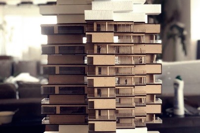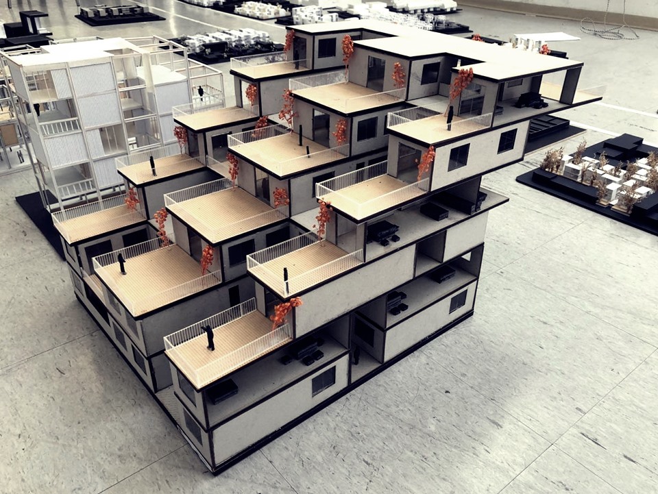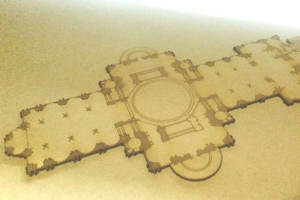 Maqueta FADU en MDF, acrilico y carton gris