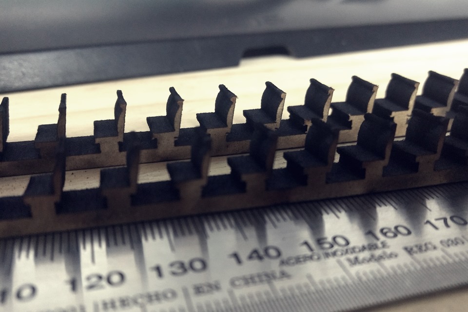 Asientos de MDF para interior de maqueta de tren