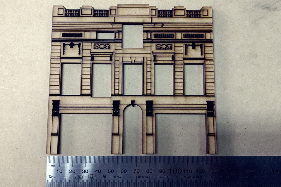 Fachada edificacion para maqueta ferromodelismo en MDF de 1mm